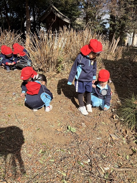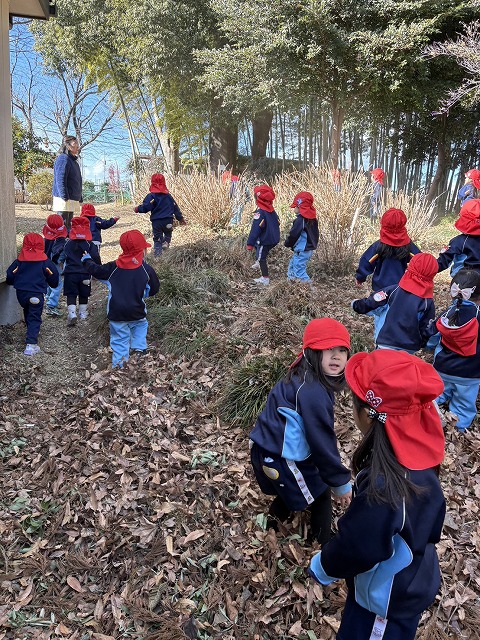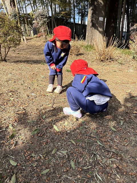 園のようす / 2026年1月22日 おさんぽへ こんにちは! 今回はお散歩の様子をお伝えします📸 さて、今回は園長先生のご自宅へお散歩へ🏃 色々な植物を見たり、どんぐりを拾ったりして楽しみました☺ ダンスの時間 ちょきんばこの色付け