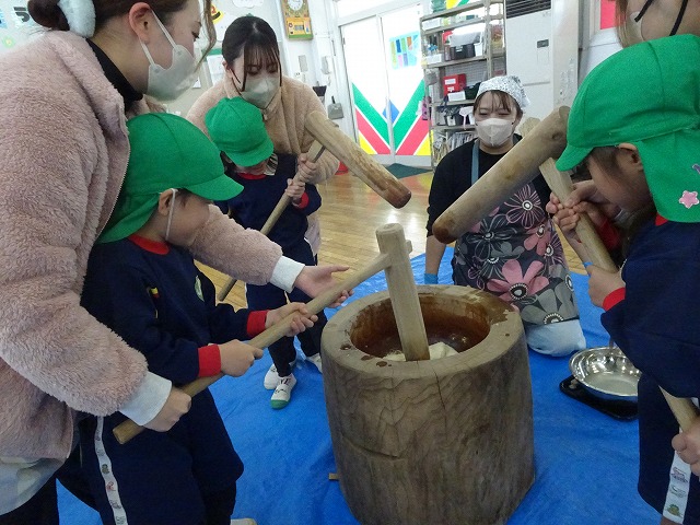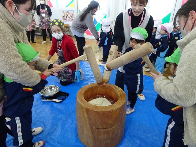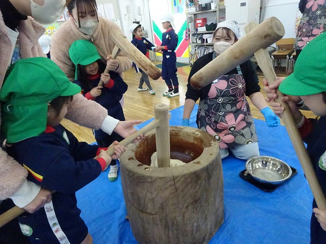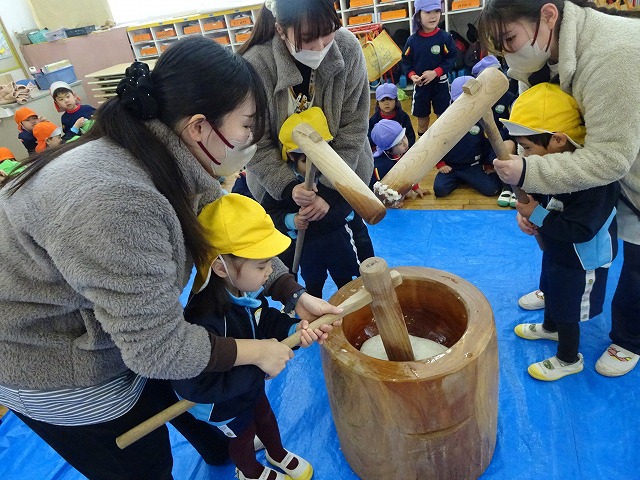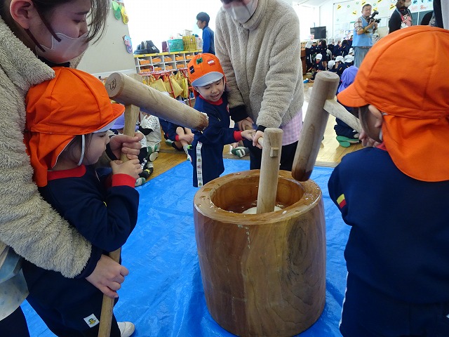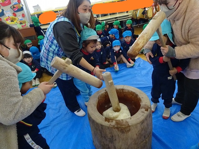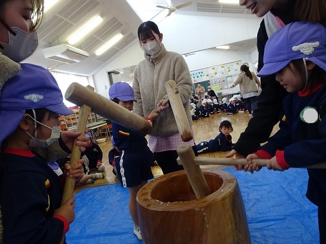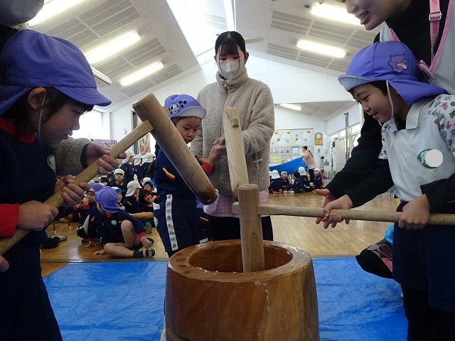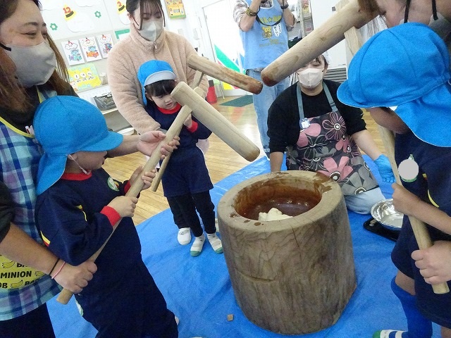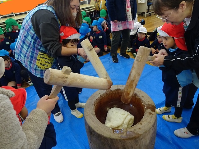 みんなが力強くおもちつきができましたね!