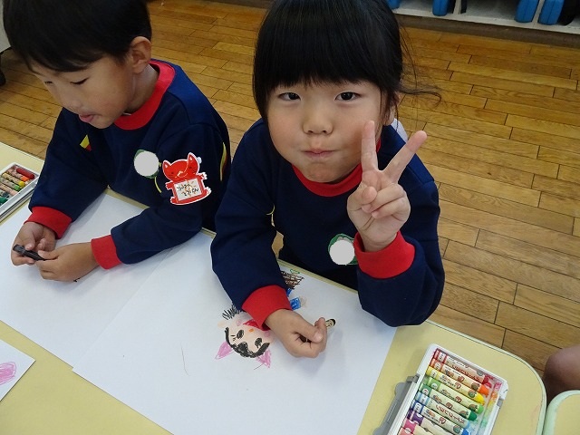 さて、本日はお遊戯会の思い出を絵に描きました☺