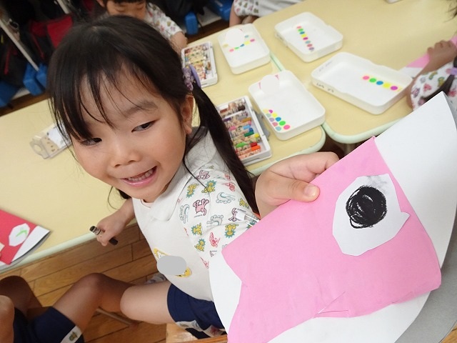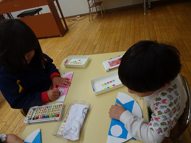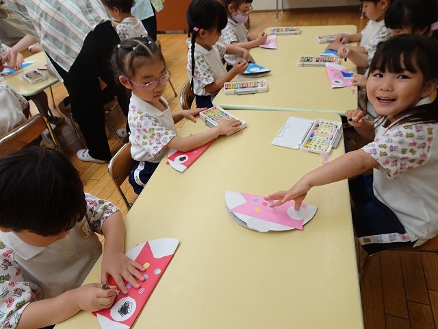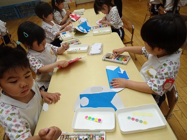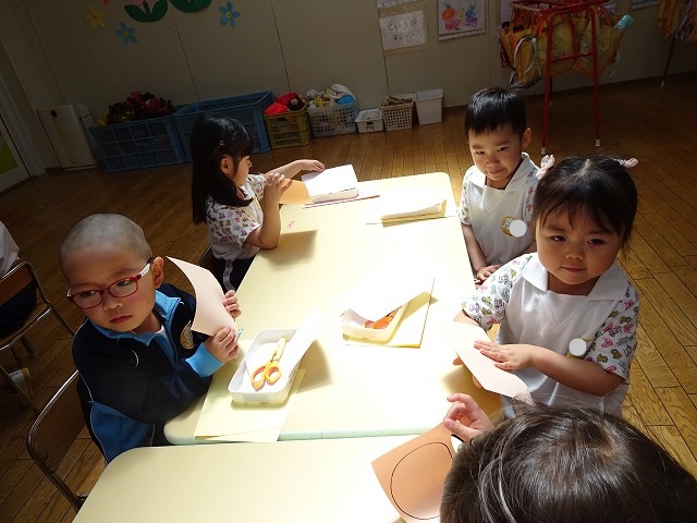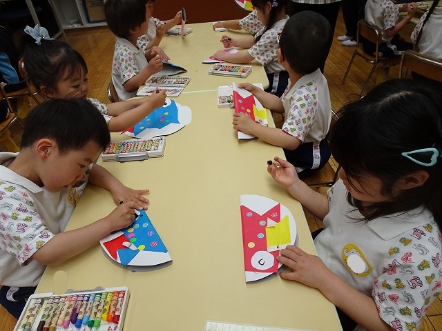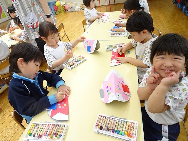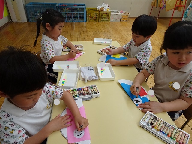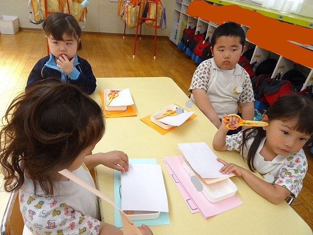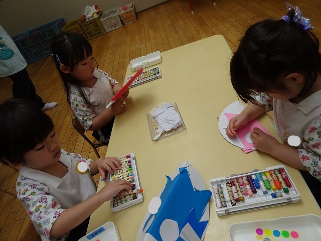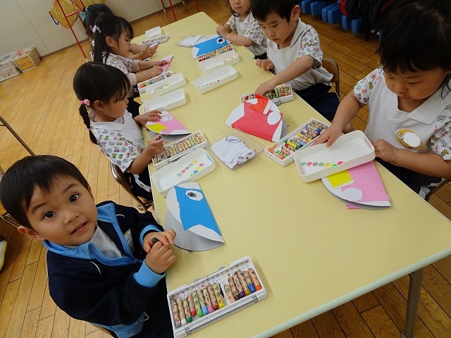子どもたちは端午の節句に向けてこいのぼりを製作しています✂