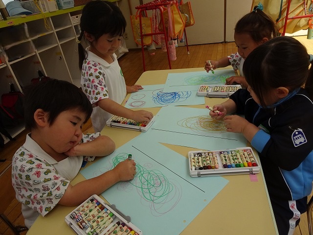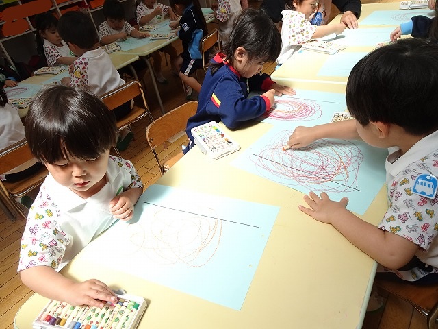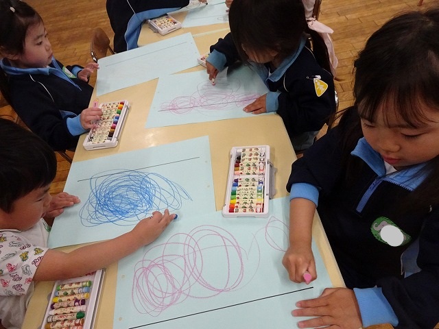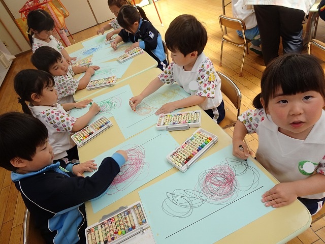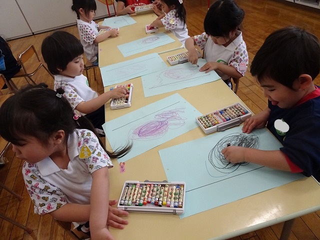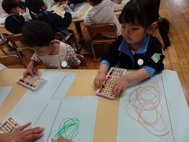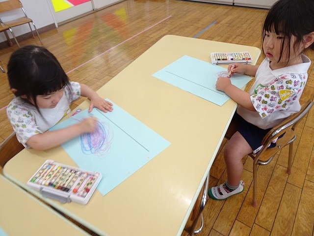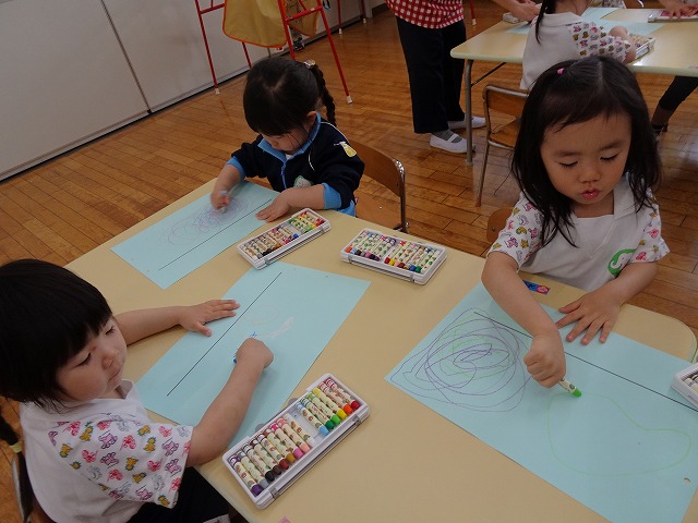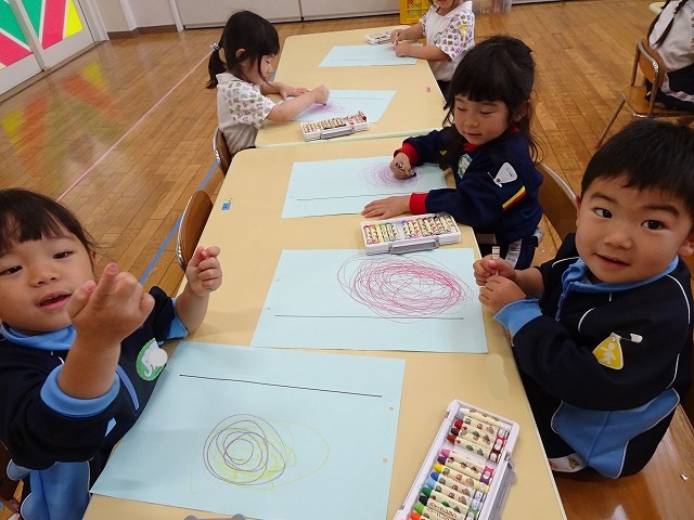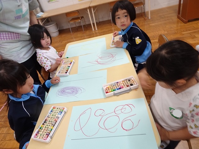 年少さんははじめてのクレヨンやのりを使って活動をしています☺