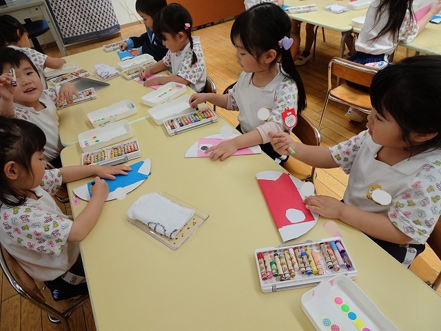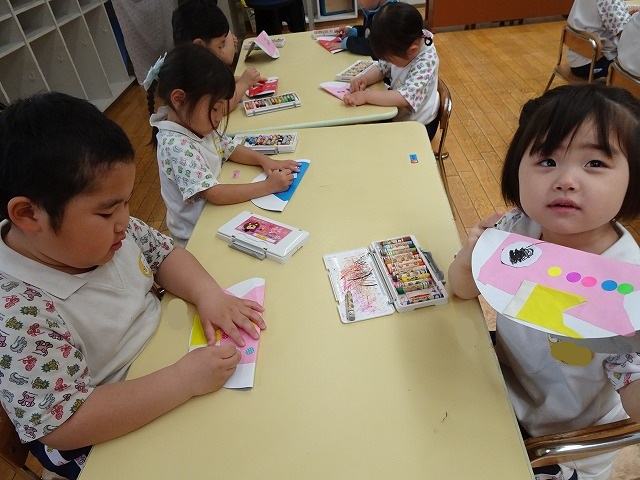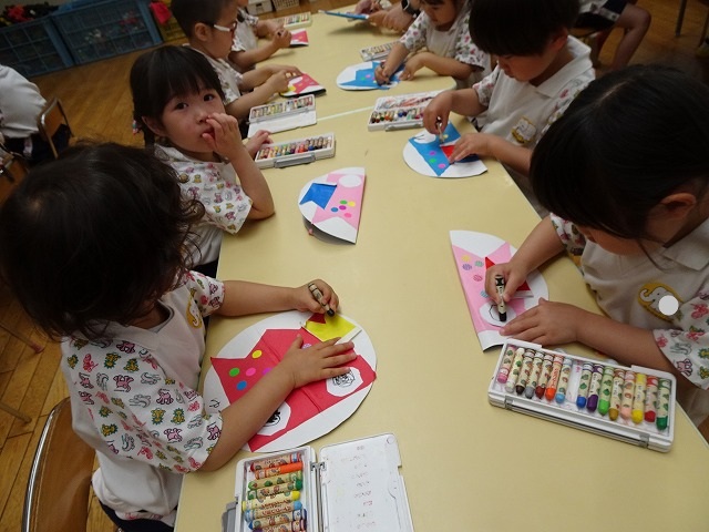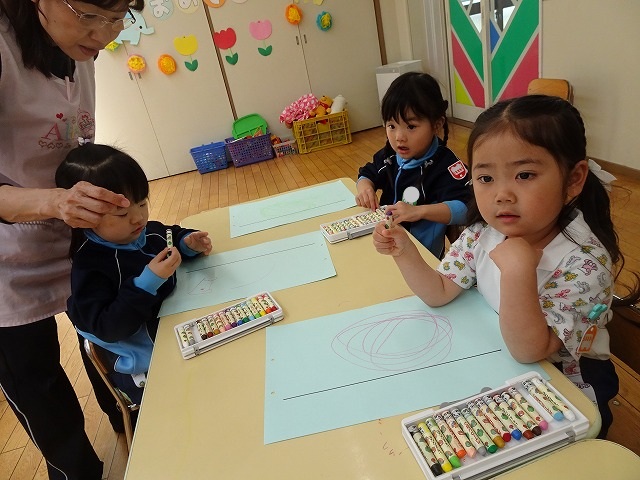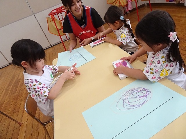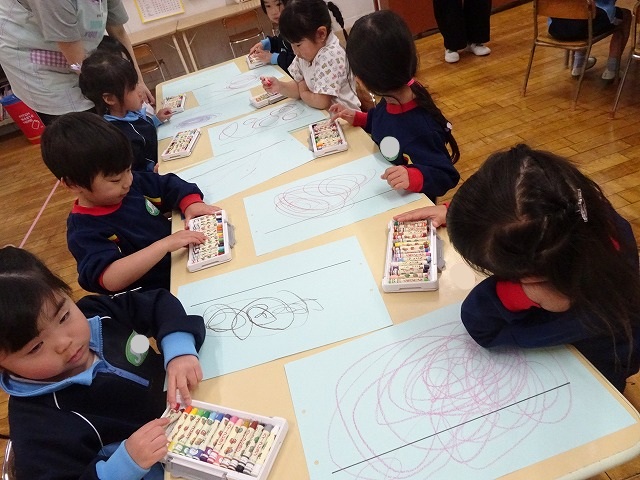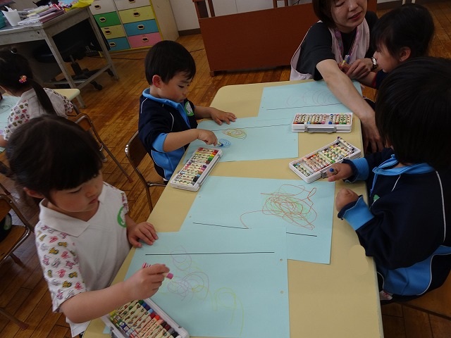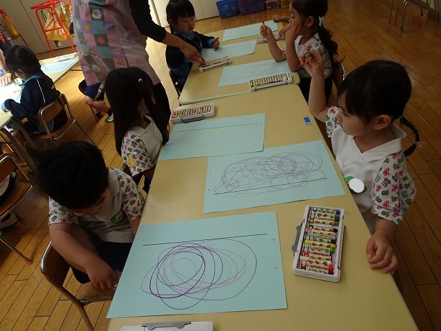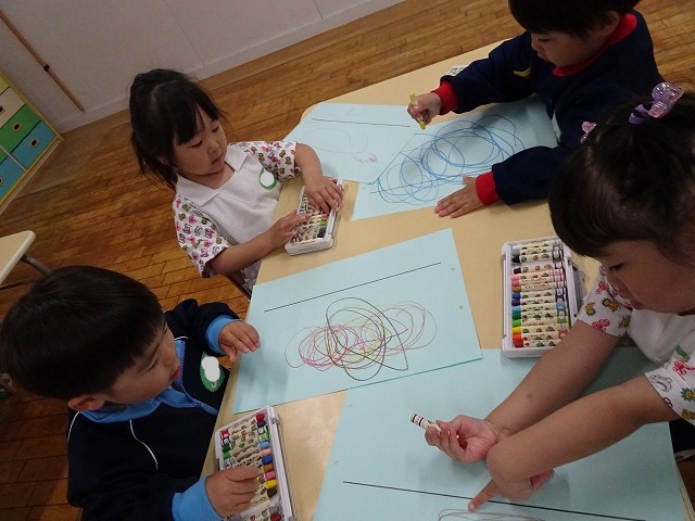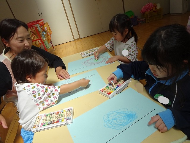 年少さんははじめてのクレヨンやのりを使って活動をしています☺
