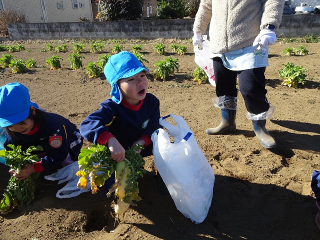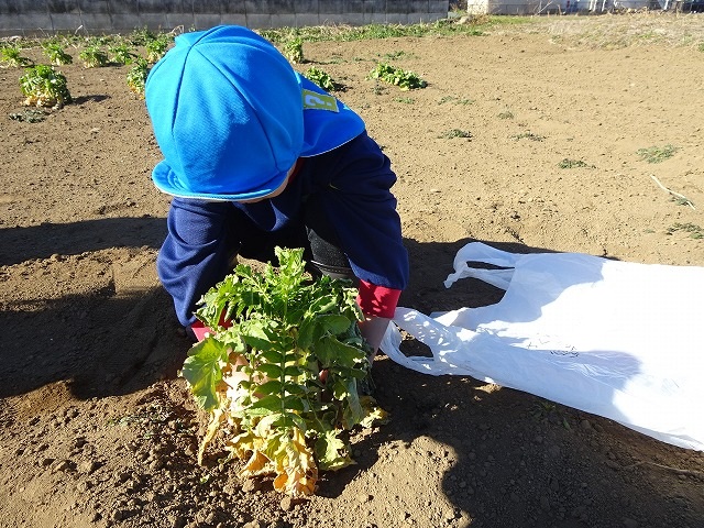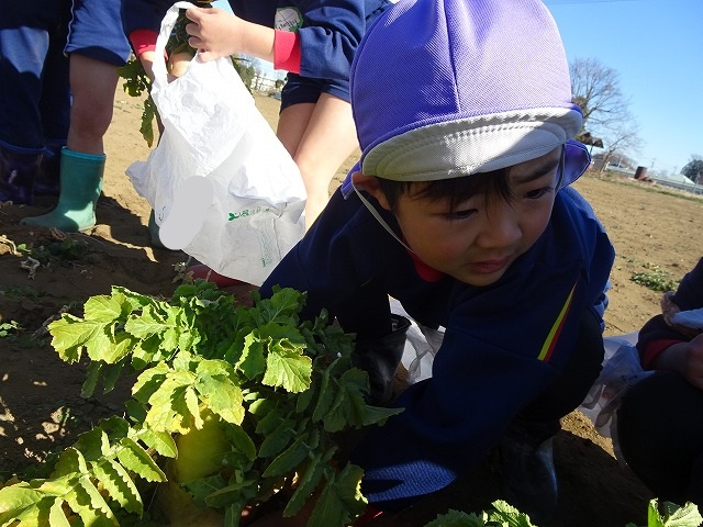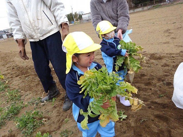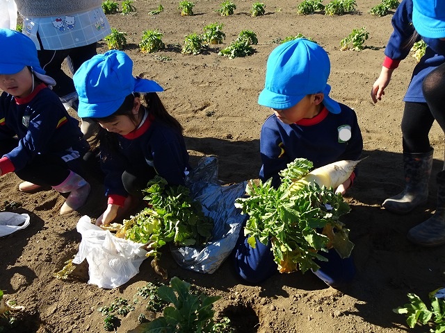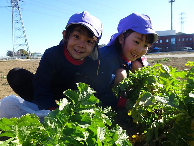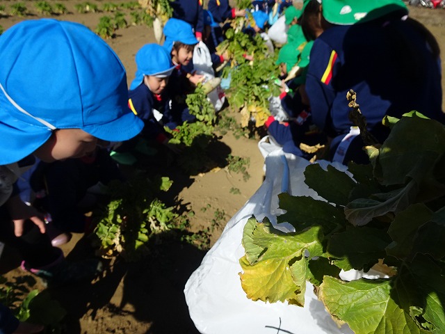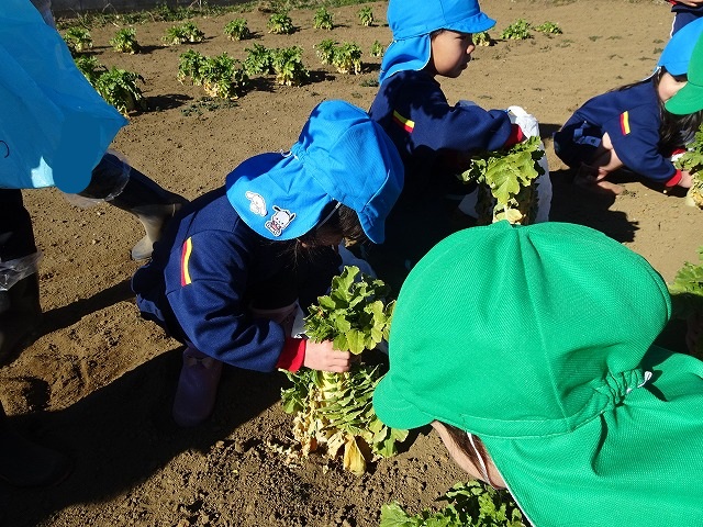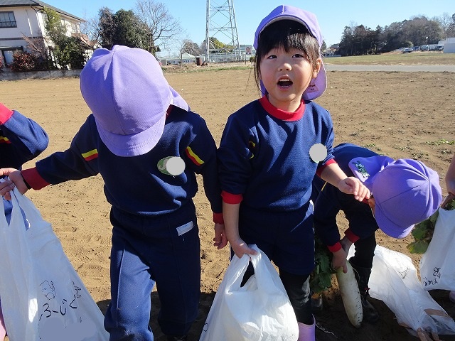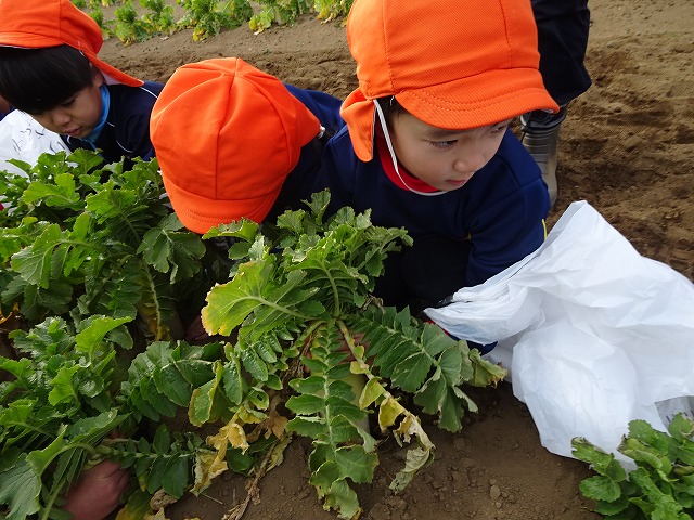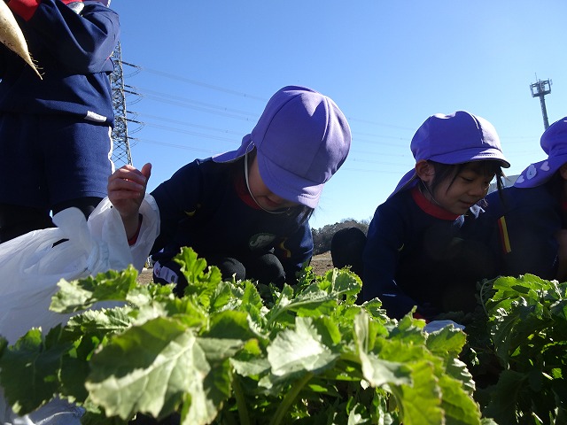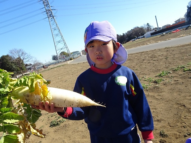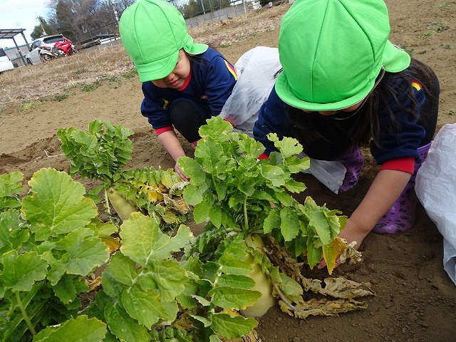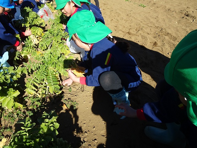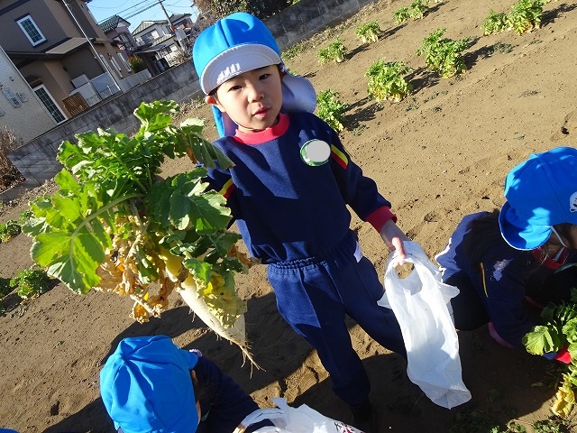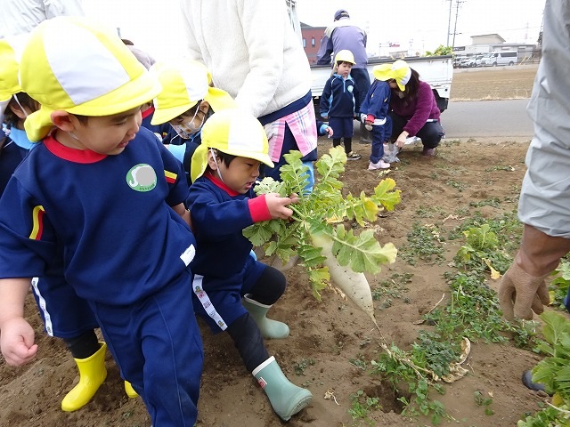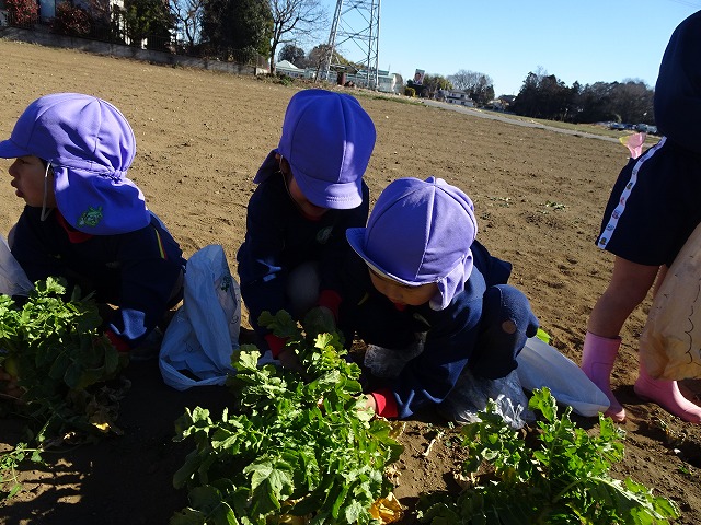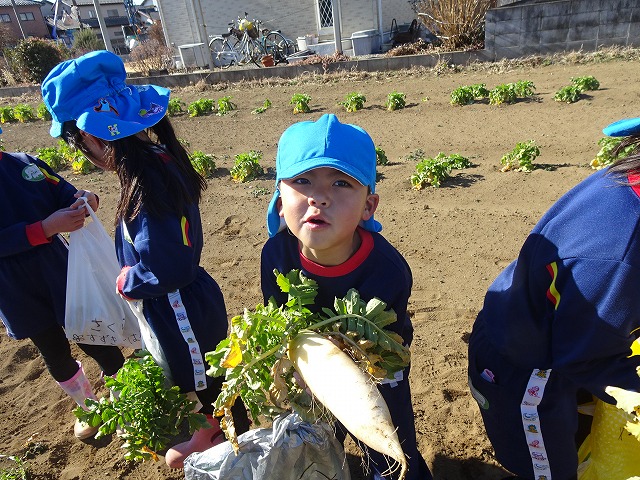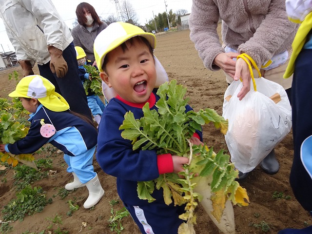 子どもたちは自分の力でだいこんを土から引き抜きます💪