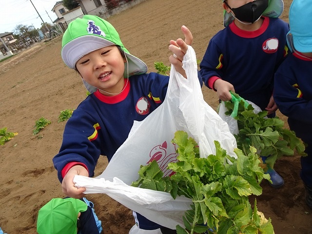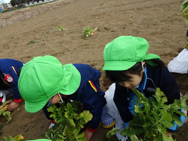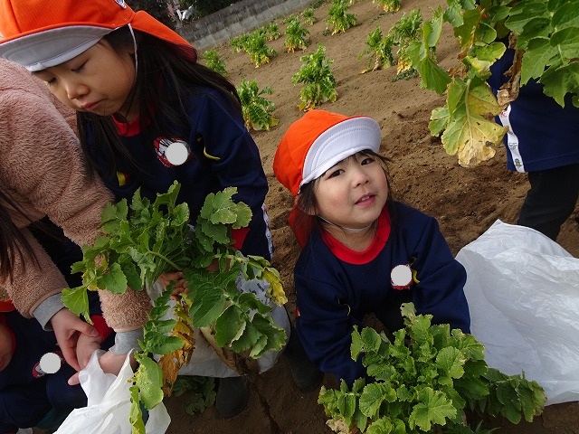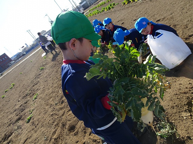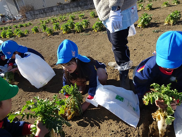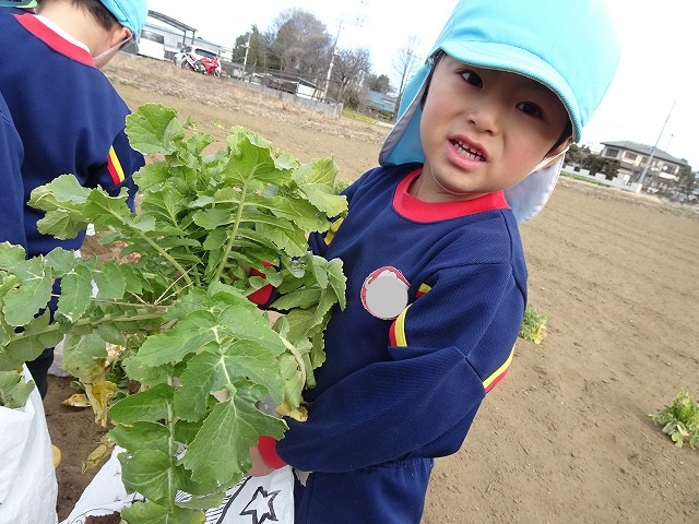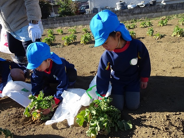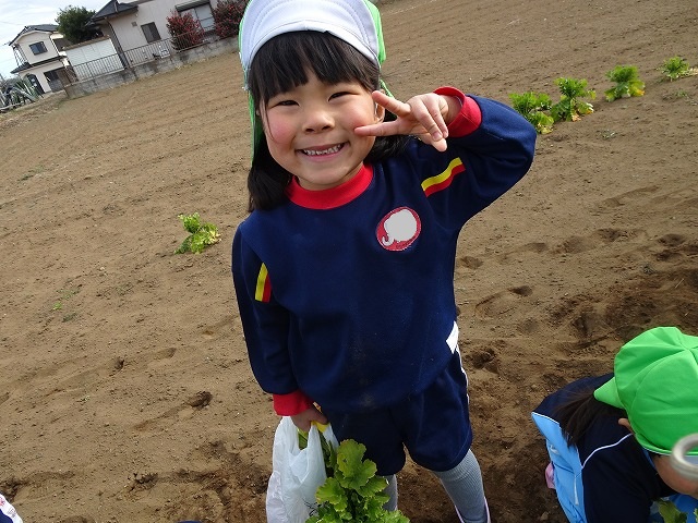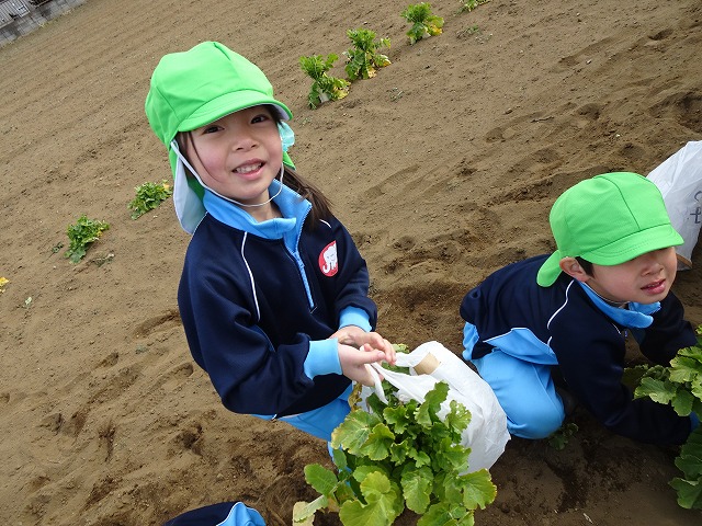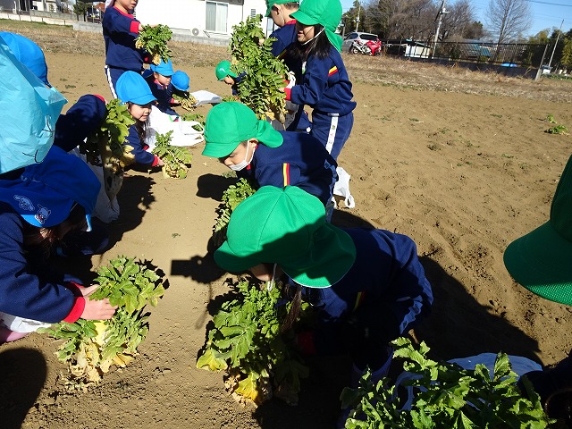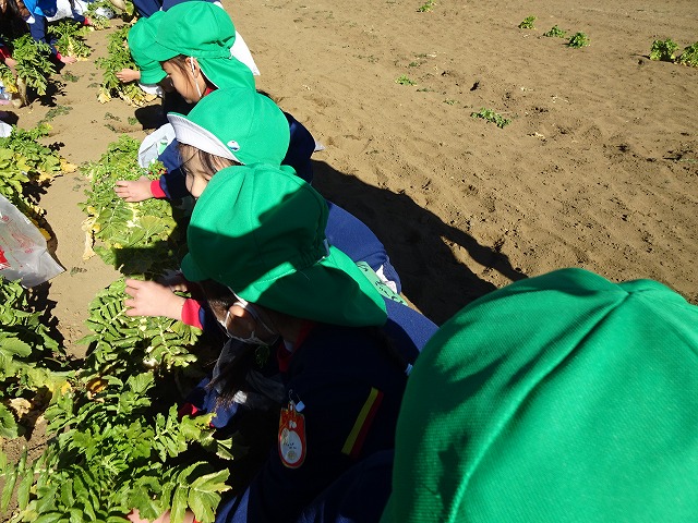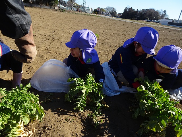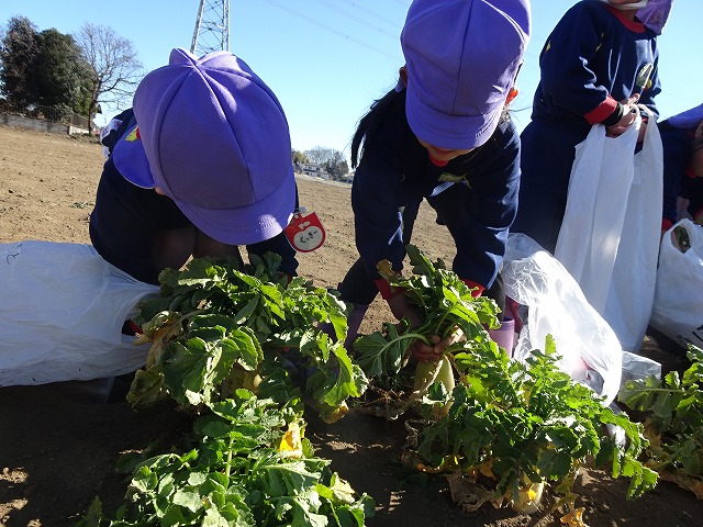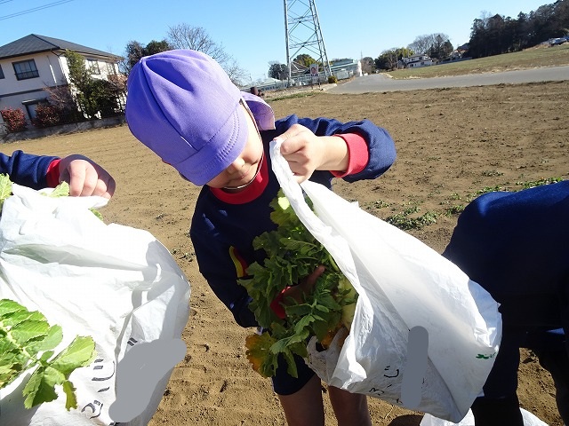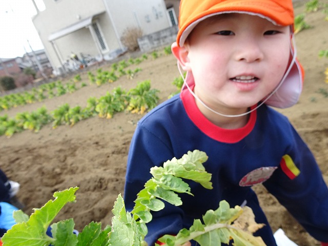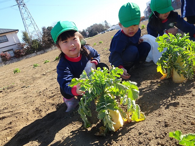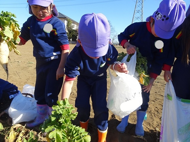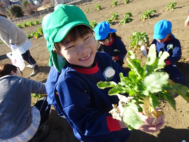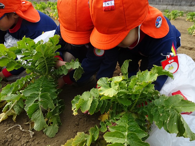 子どもたちは自分の力でだいこんを土から引き抜きます💪