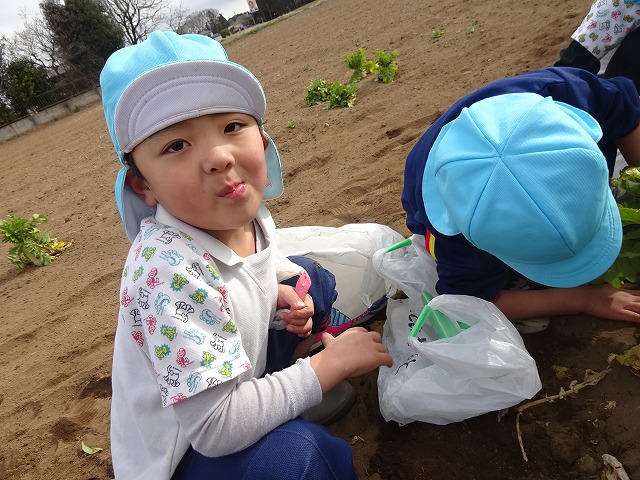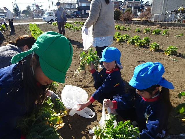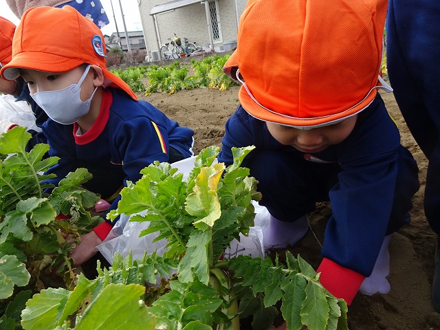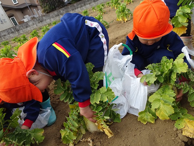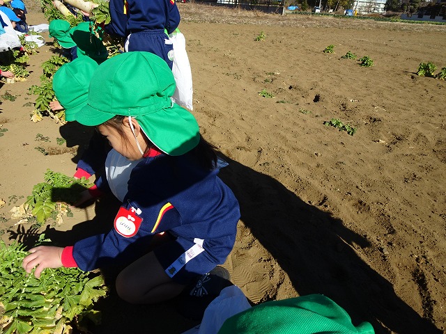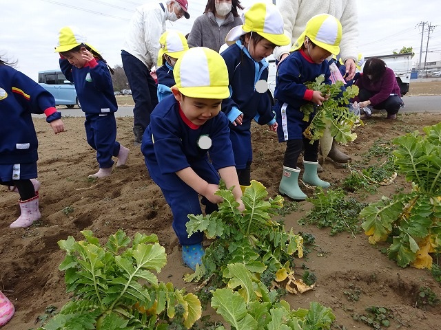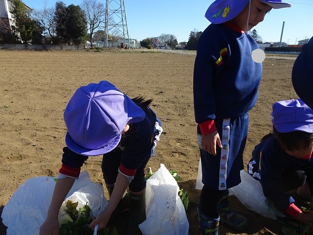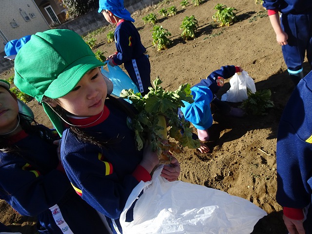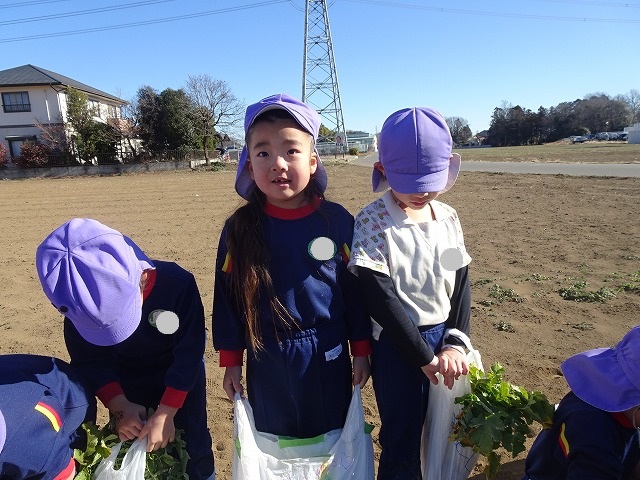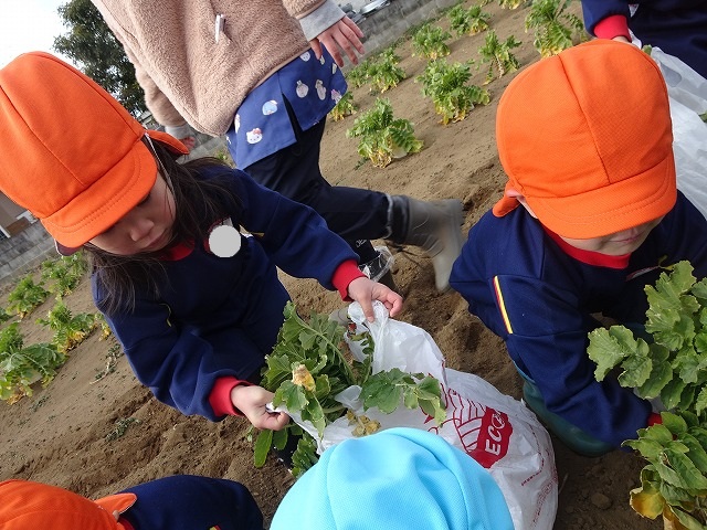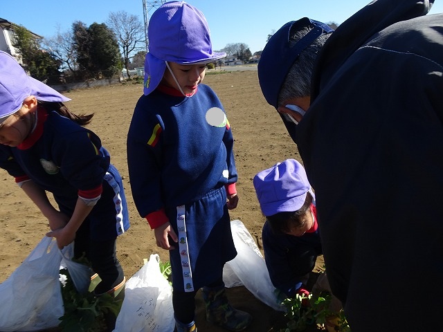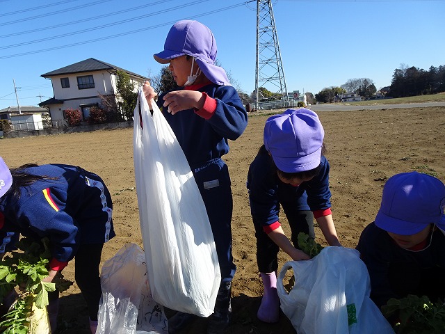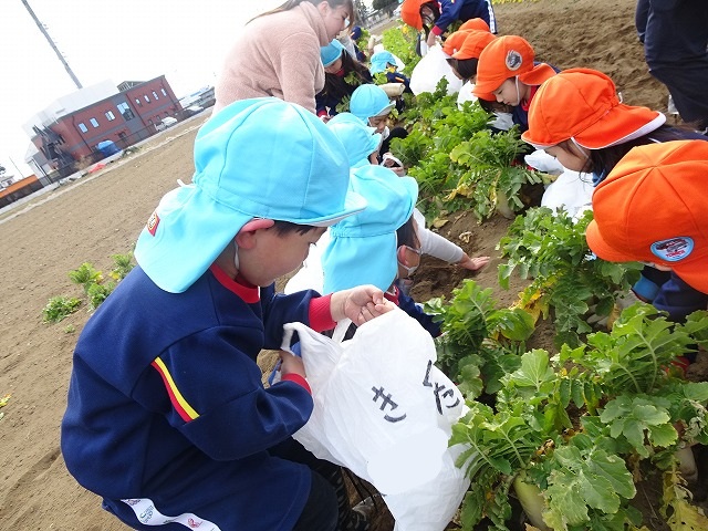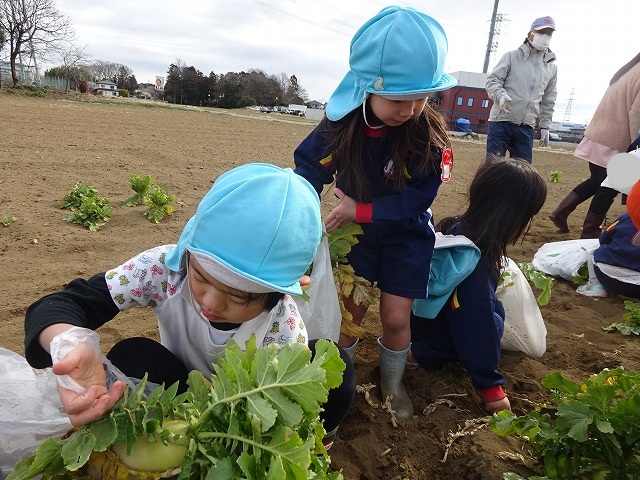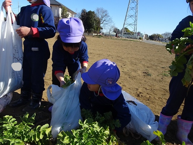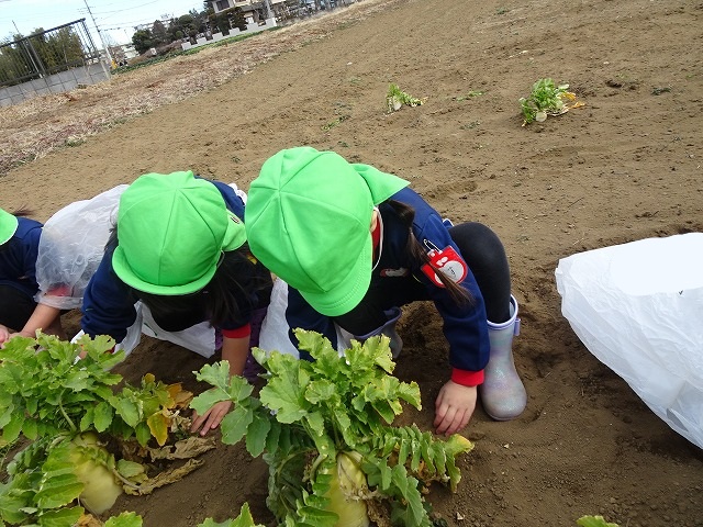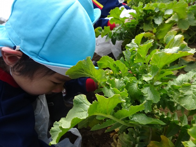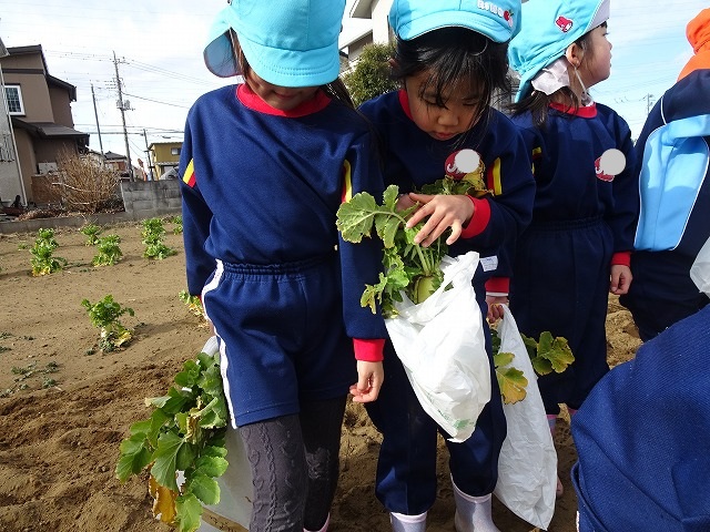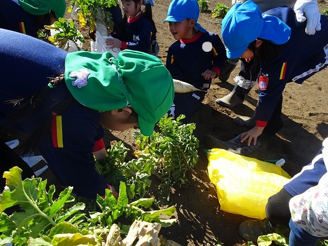 子どもたちは自分の力でだいこんを土から引き抜きます💪