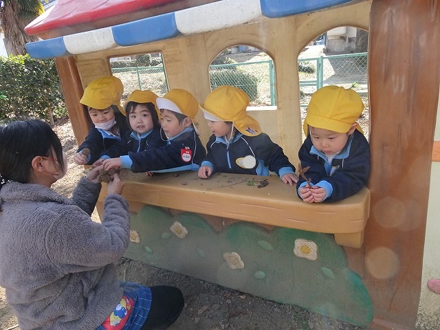 さて、今回は年少さんがどんぐりの森で遊んでいる様子です