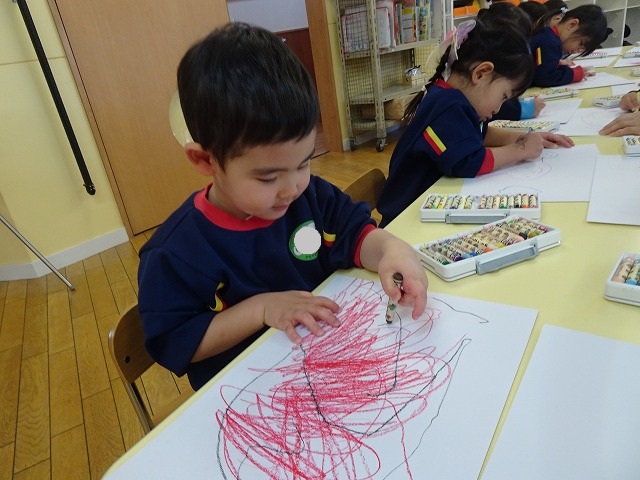 この日は画用紙いっぱいに自由に絵を描きました🖍