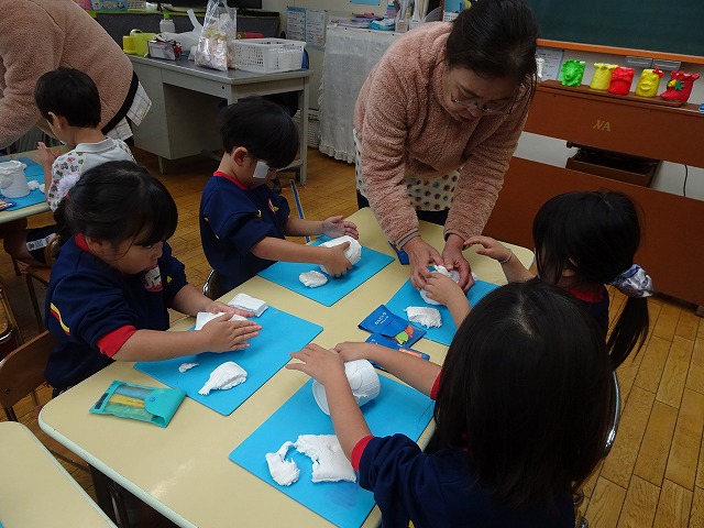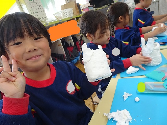 ちょっと忙しそうにしながら、普段の粘土とは異なる感触を楽しんで制作に臨んでいました☺