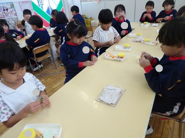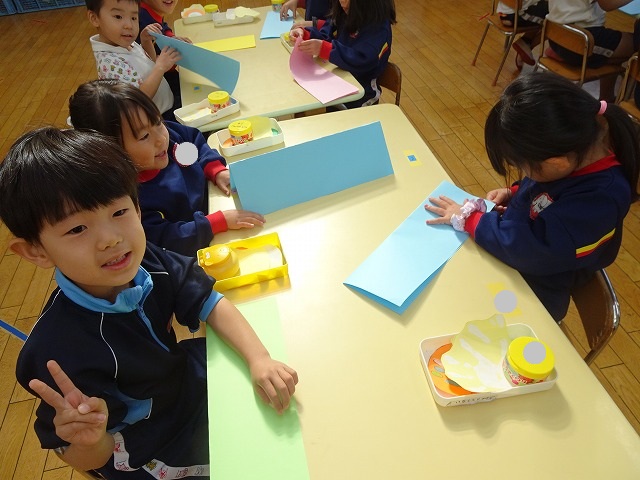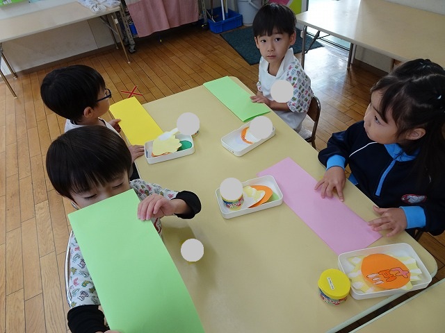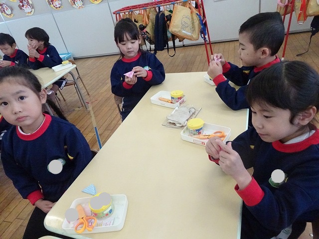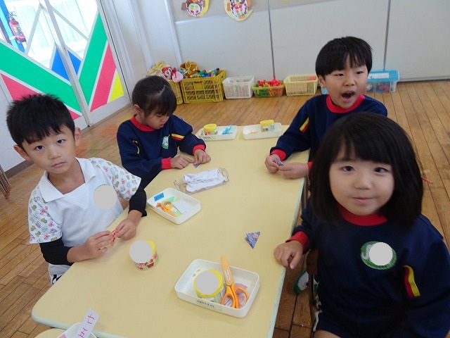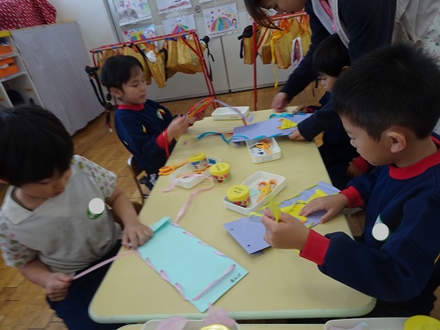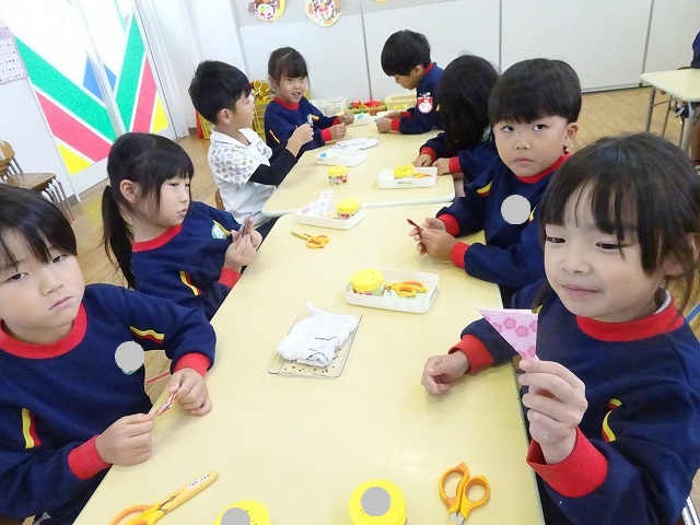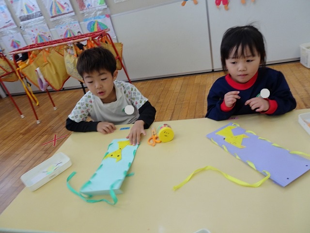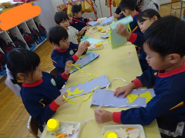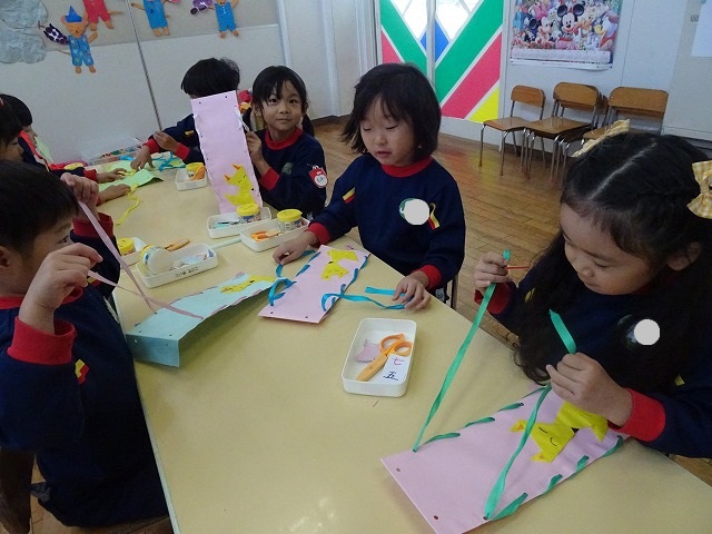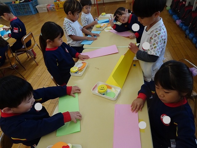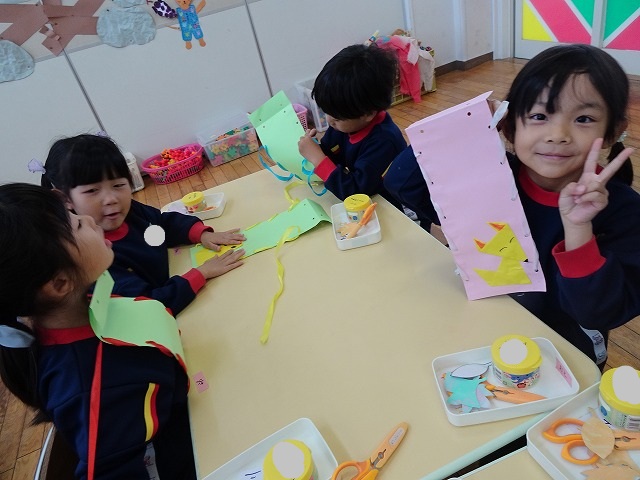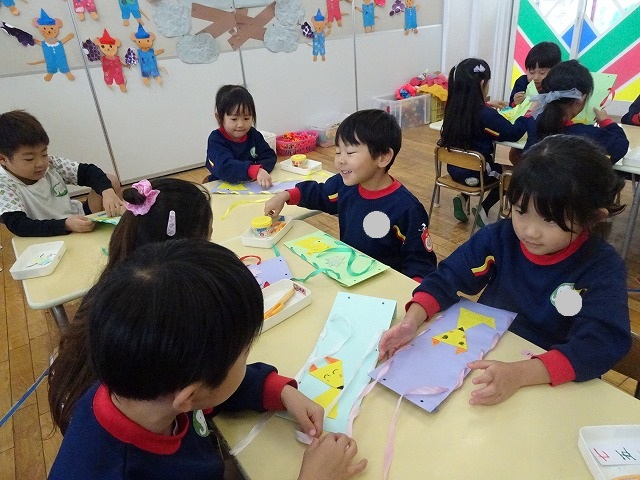 子どもたちにも「七五三ってなんだろう」というお話をしながら、身近に感じられるような制作をしています