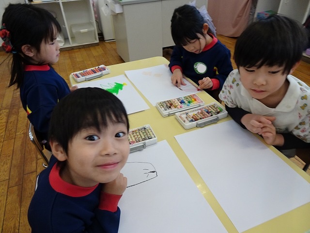 さて、本日は冬休みの思い出の絵を描きました🖍