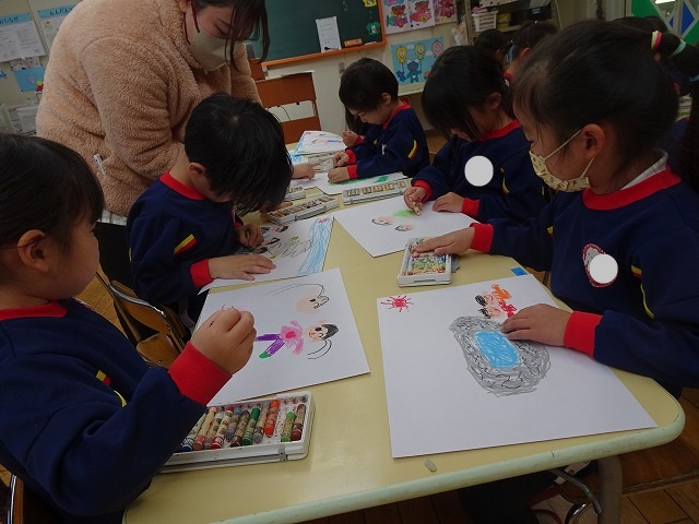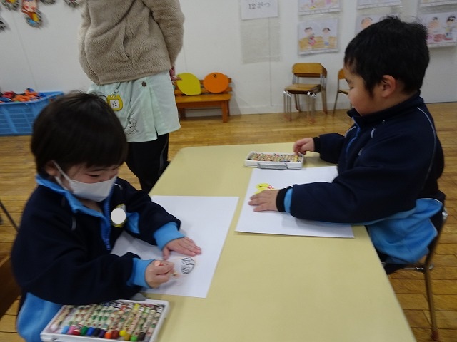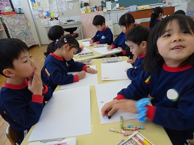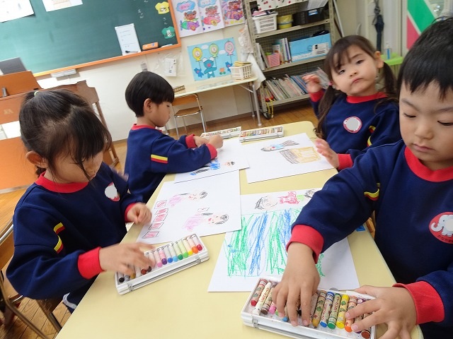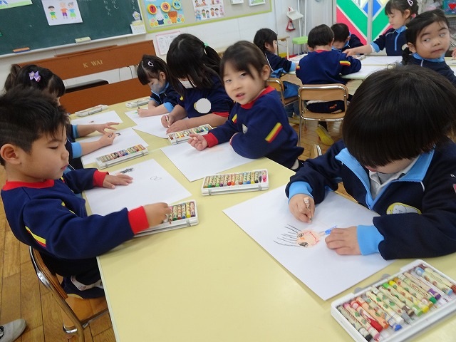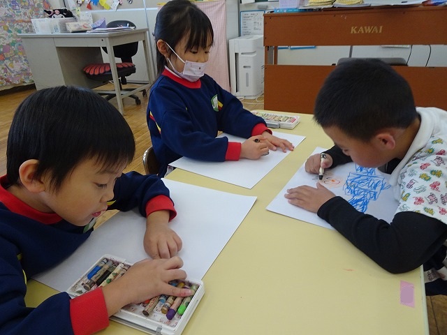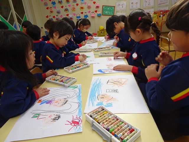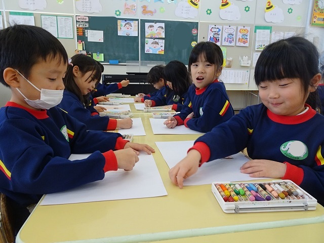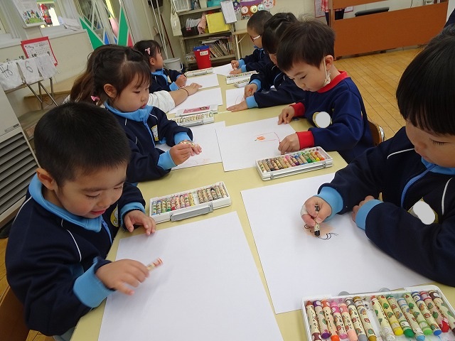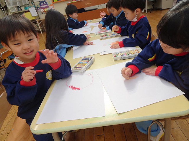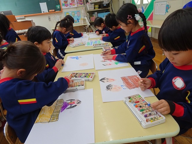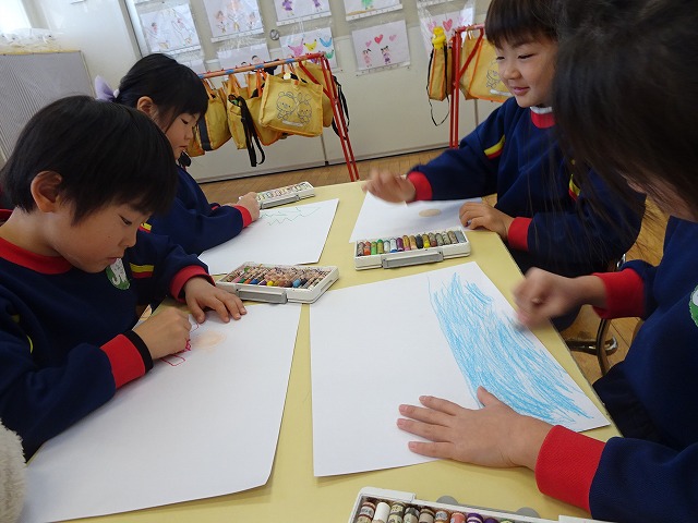 さて、本日は冬休みの思い出の絵を描きました🖍