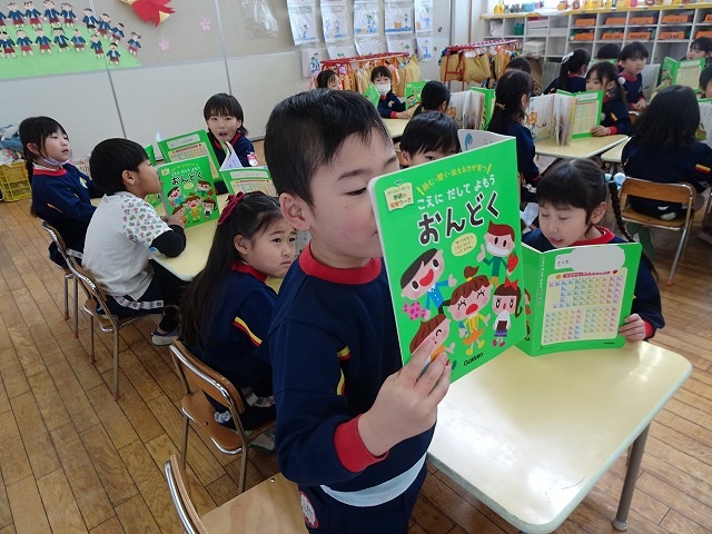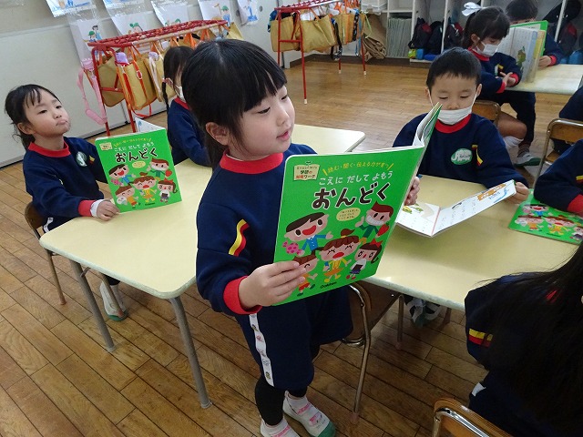 園のようす / 2026年1月29日 年長さんの音読 こんにちは! 今回は音読の様子をお伝えします📸 年長さんの音読の時間です📖 ひらがなを読むのも、書くのもとても上手になりました👏 お部屋ではみんなの前でかっこよく発表している姿も見られます☺ こういった経験も一人一人の自信につながればと思います! 給食の様子 作品展に向けて