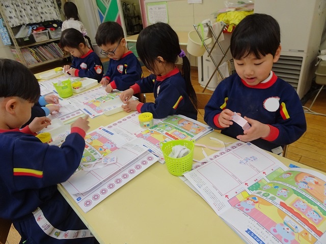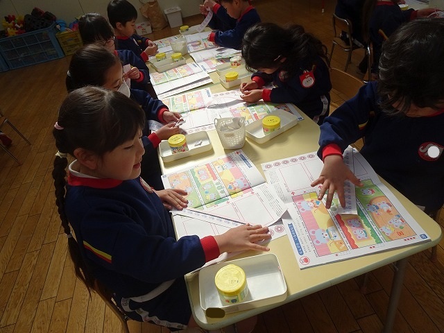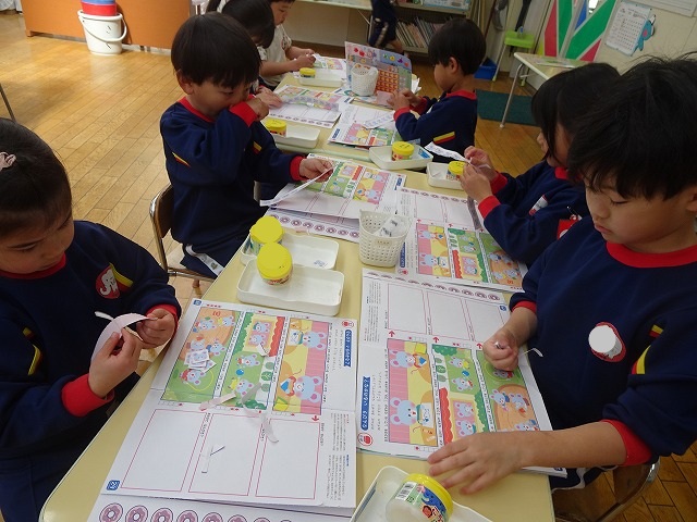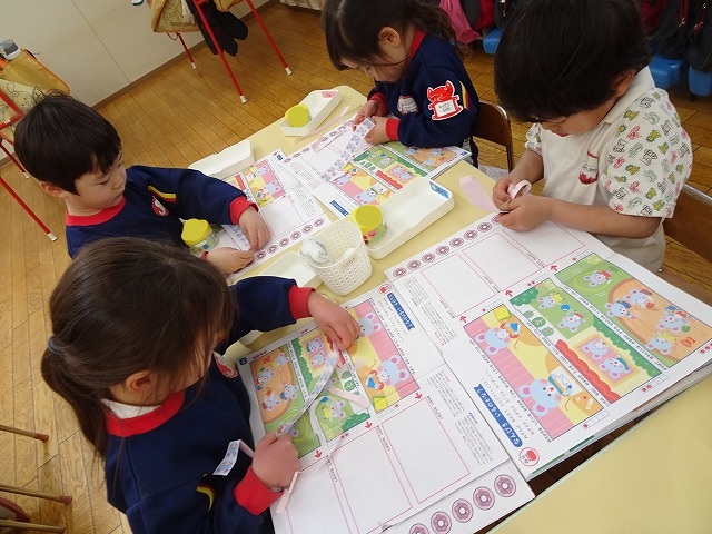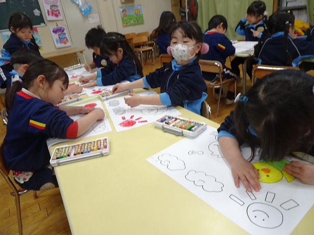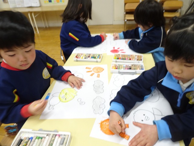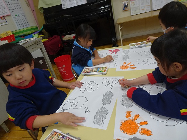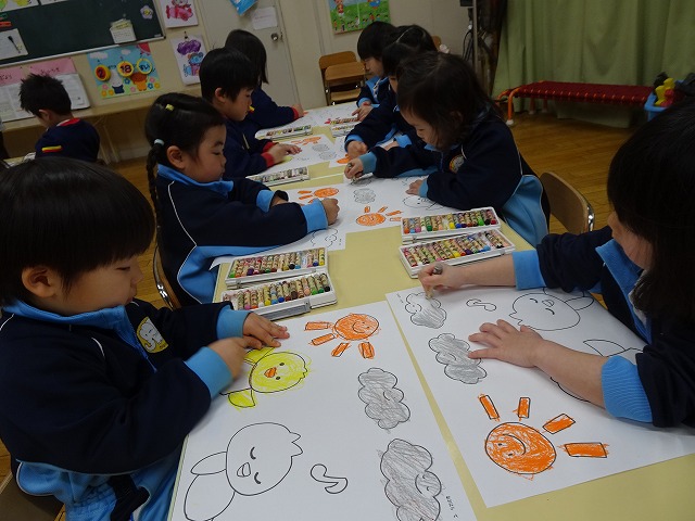 年少さんぬりえをしています🖍