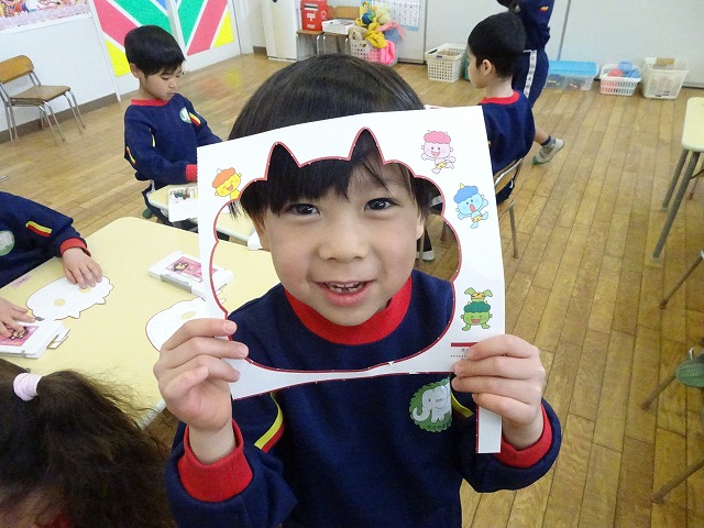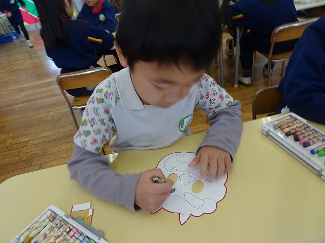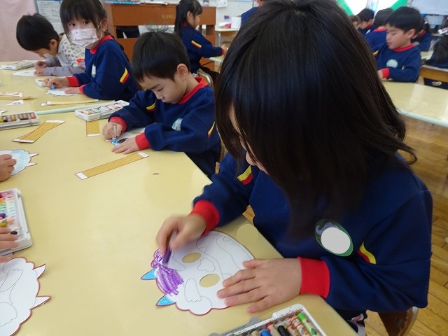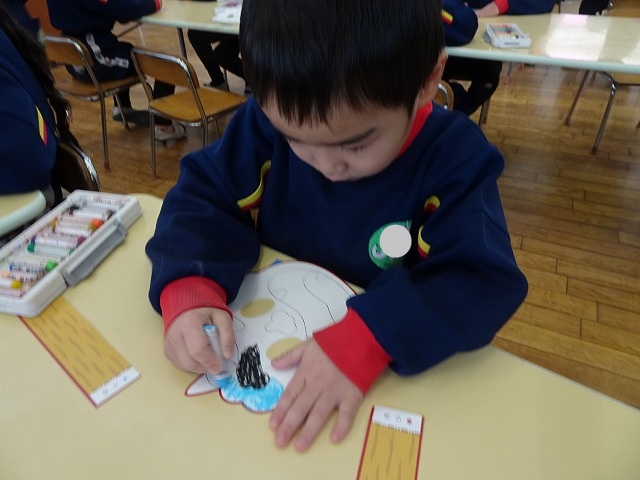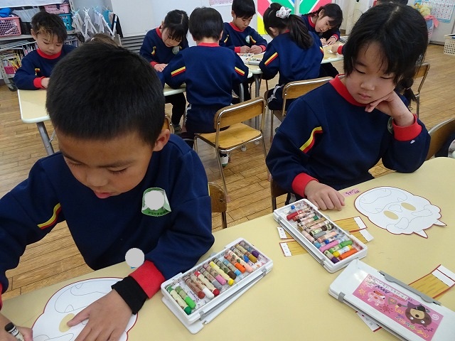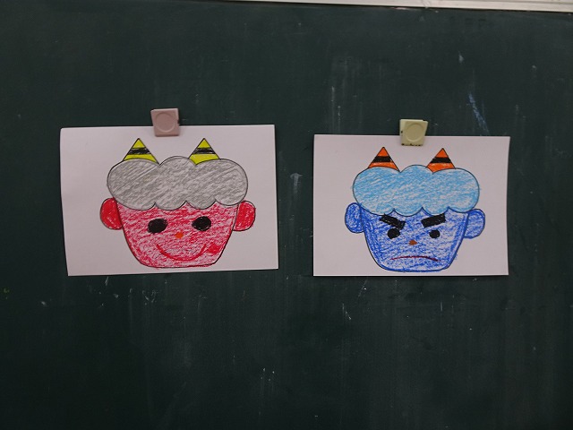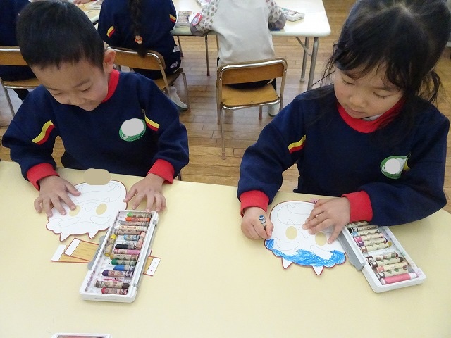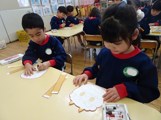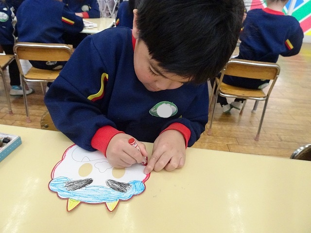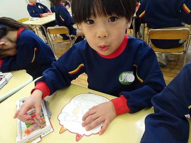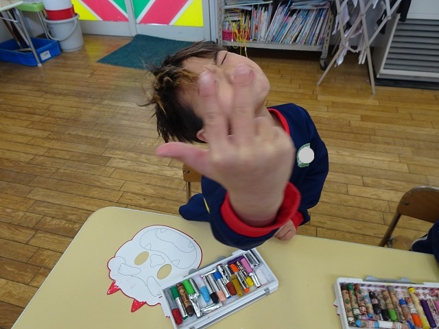 節分に向けておにのお面づくりということで、みんなそれぞれ個性のあるおにができています😲