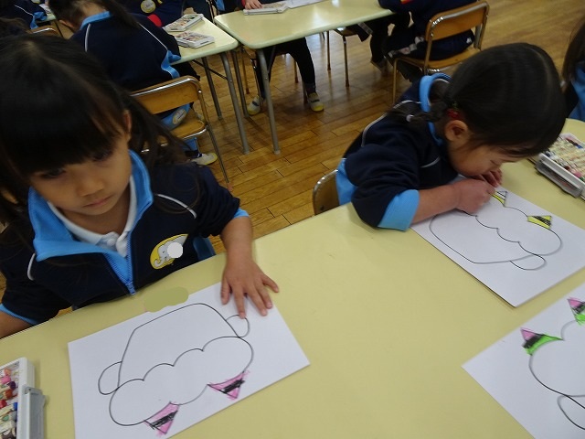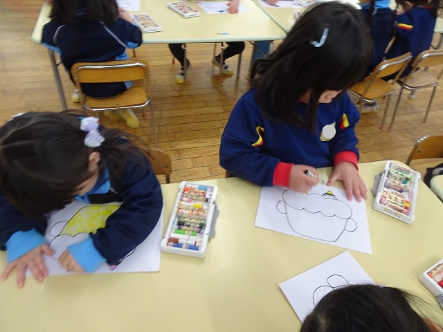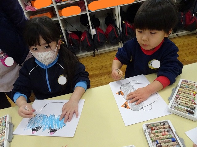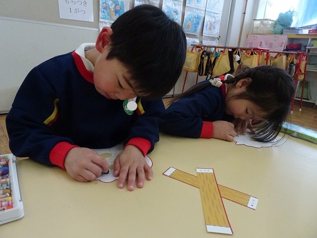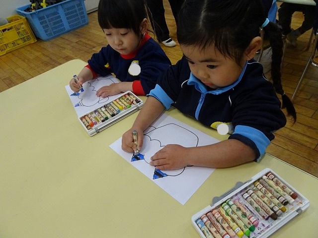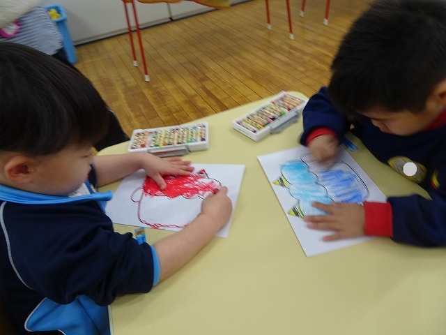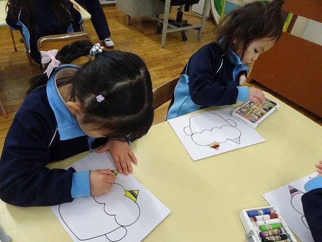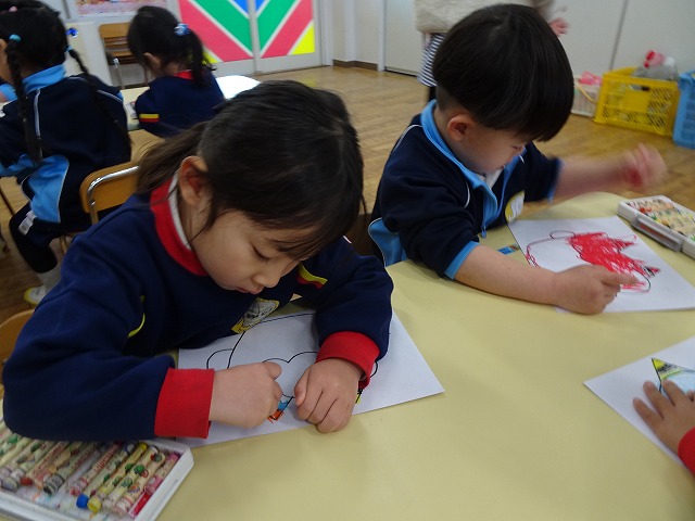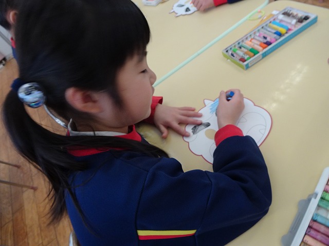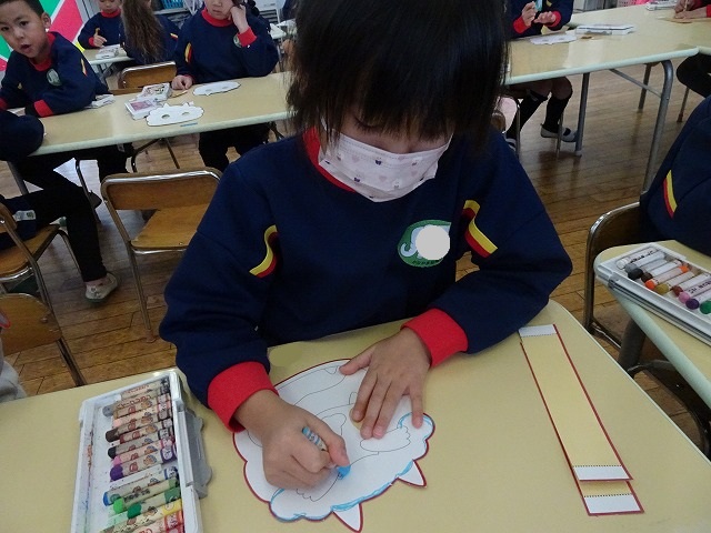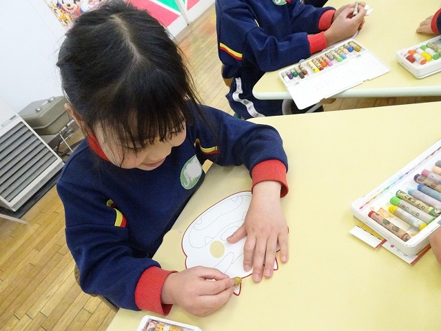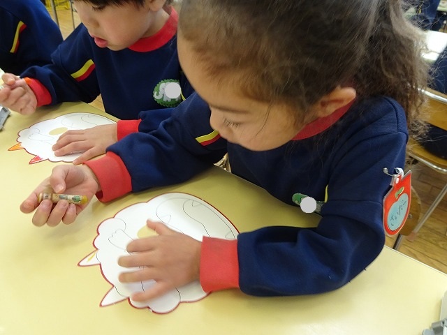 節分に向けておにのお面づくりということで、みんなそれぞれ個性のあるおにができています😲
