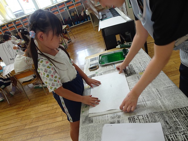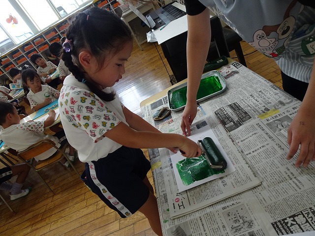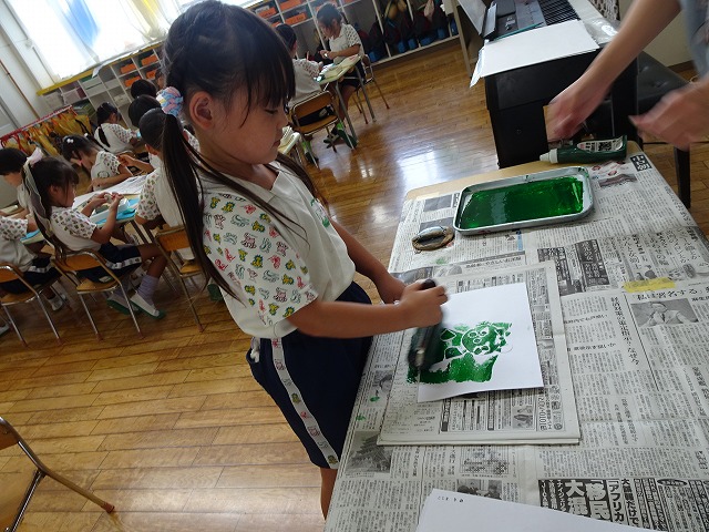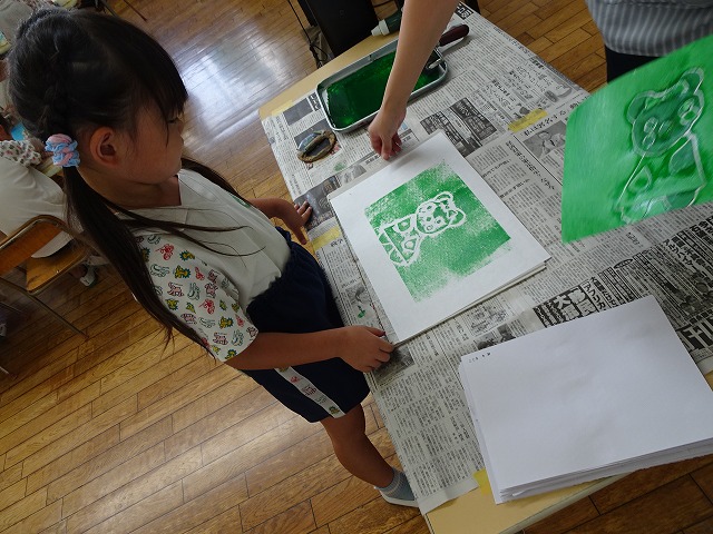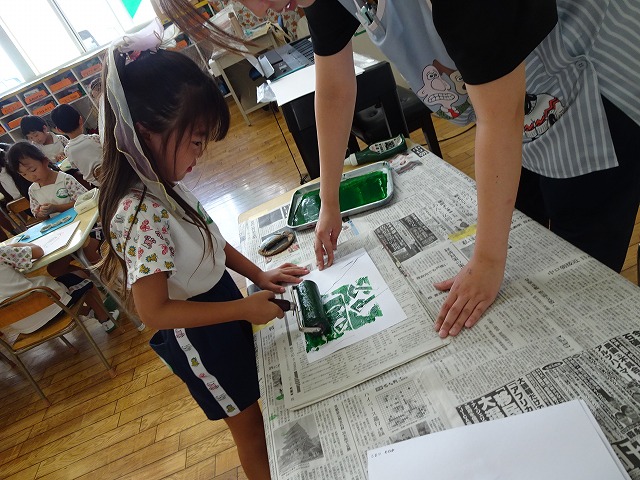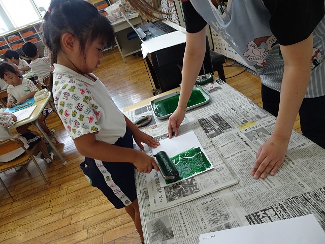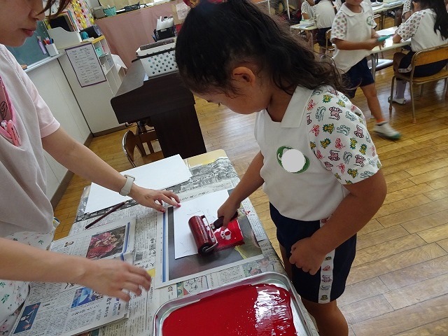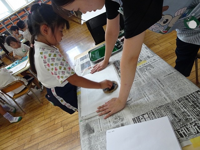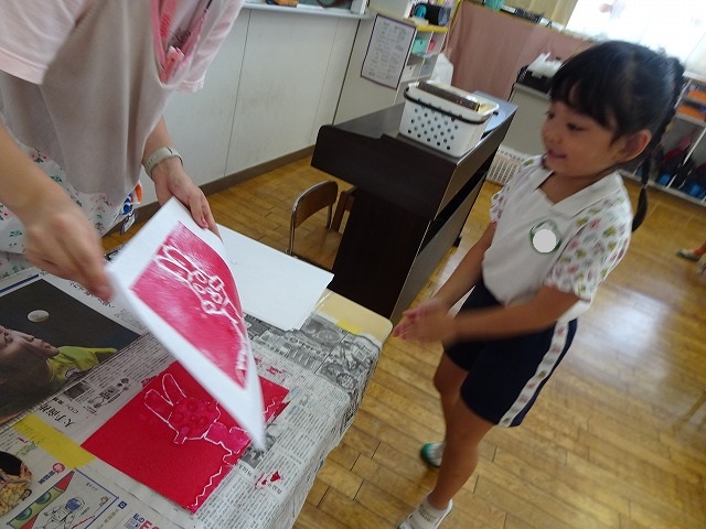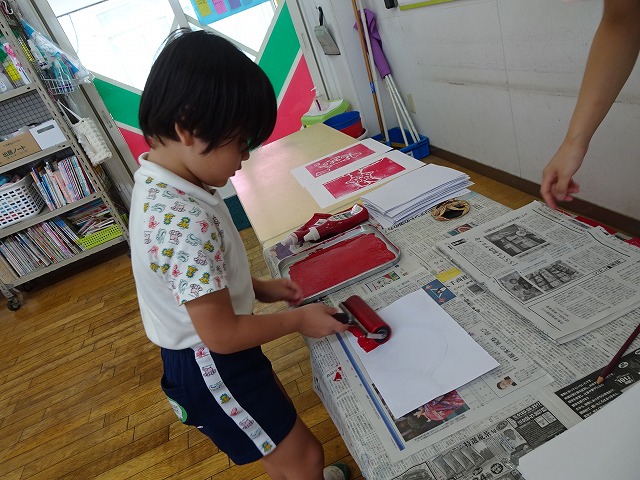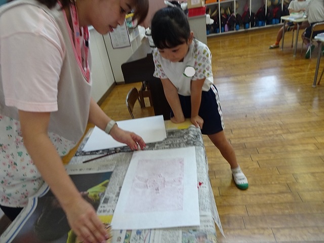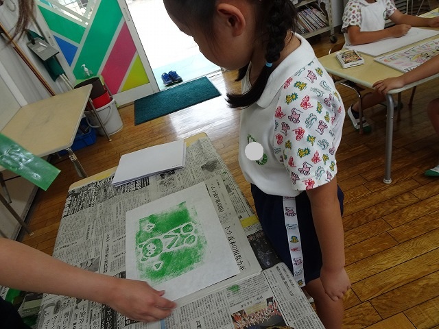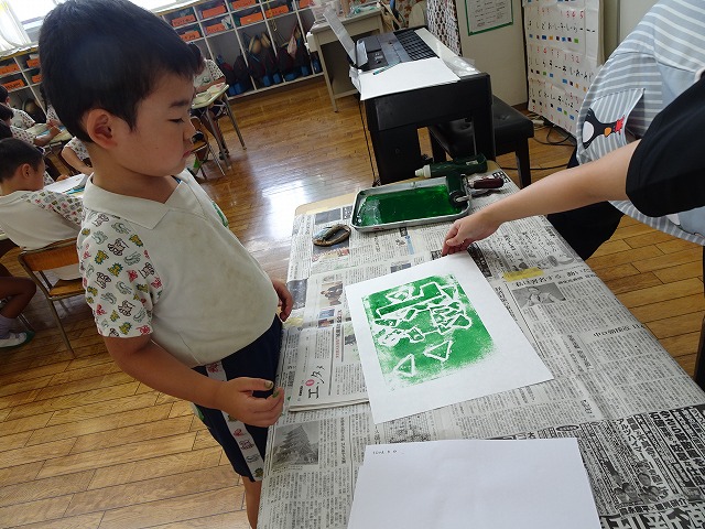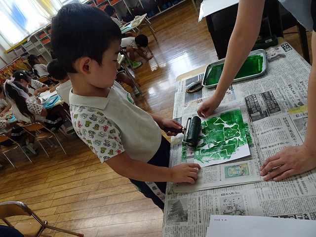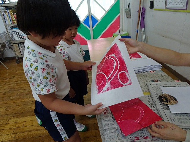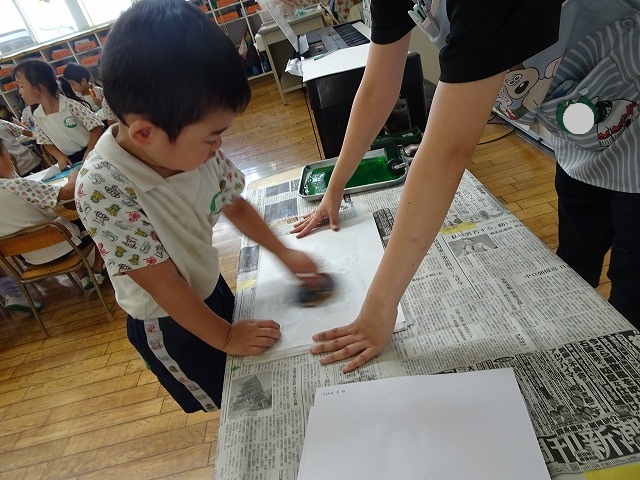年長さんが取り組んだ紙版画の時間です。