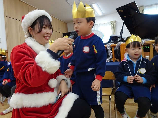 園のようす / 2025年12月15日 12月の誕生会 こんにちは! 今回は12月の誕生会の様子をお伝えします🎂 今月もたくさんのおともだちが誕生日を迎えました👏 12月はお誕生日会とクリスマス会の2本立てです! おたんじょうびおめでとう! クリスマス会🎄 本日の様子