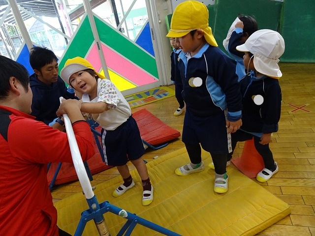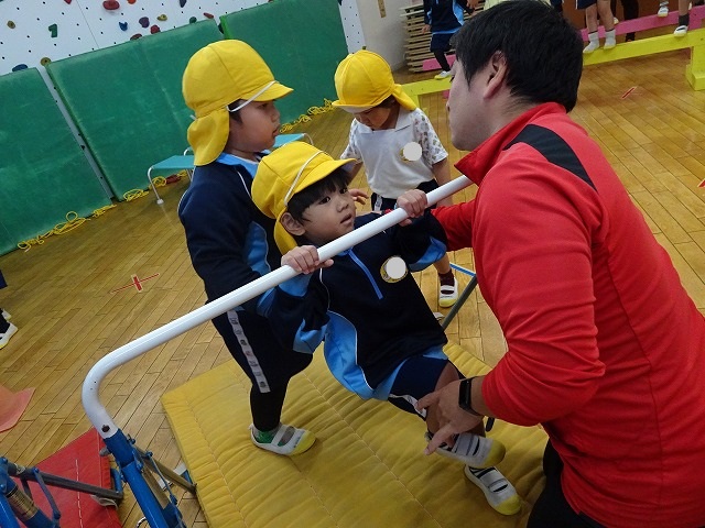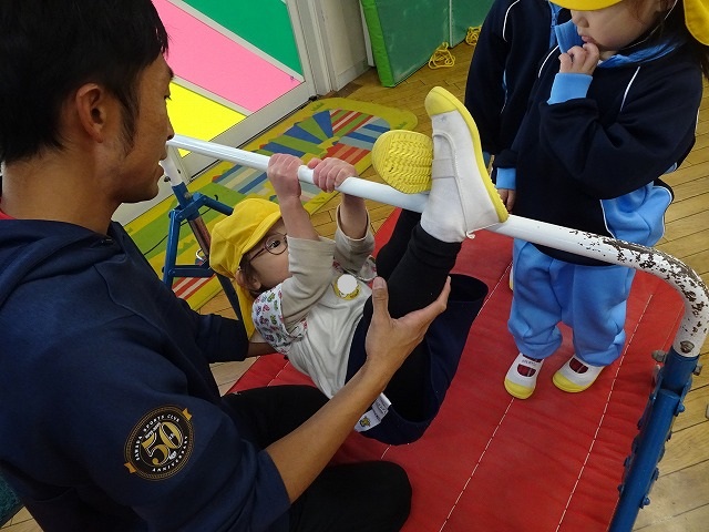 補助をもらいながら鉄棒にも挑戦💪