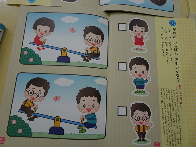 年長さんは重さ比べのワーク